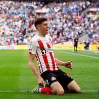 Ross Stewart scores for Sunderland to put them 2-0 up against Wycombe in the League One Playoff Final at Wembley.